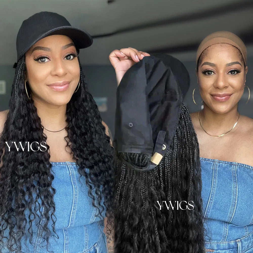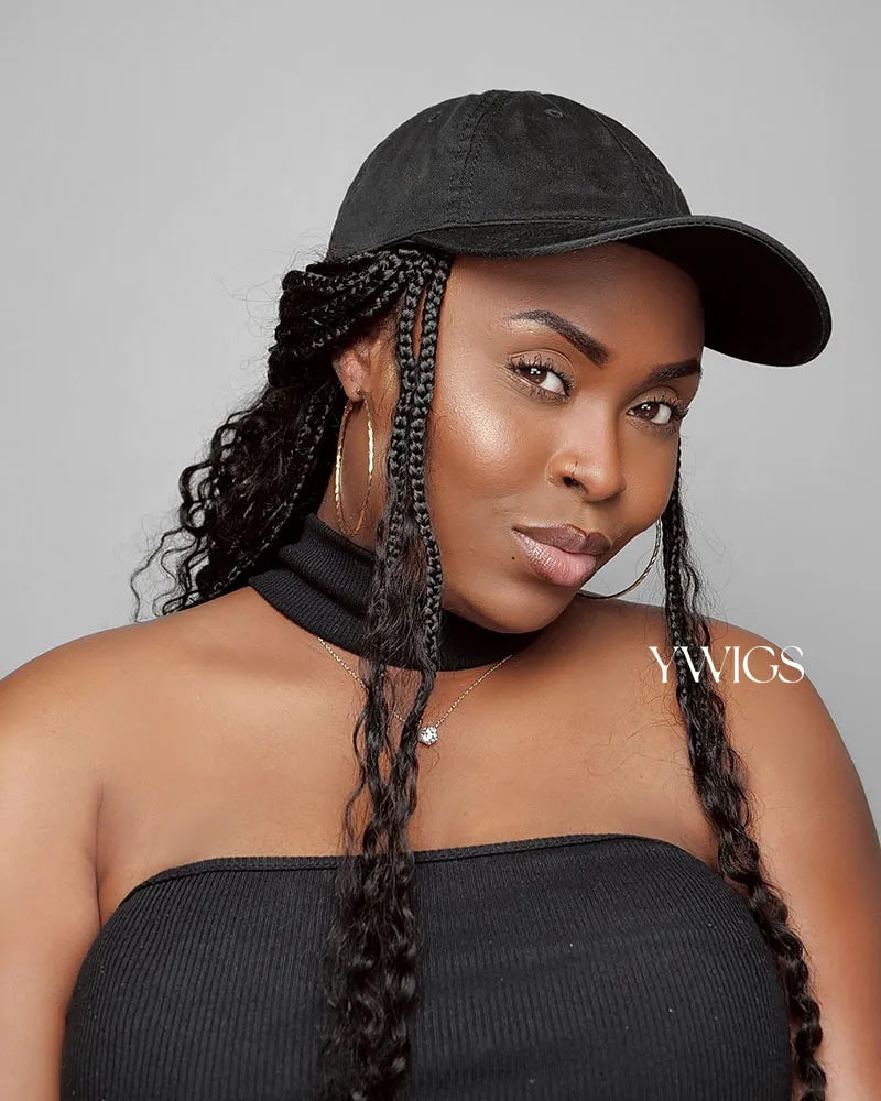 💥Flash Sale | Grab & Go Braids Cap Wig Boho Style with Human Hair Curls