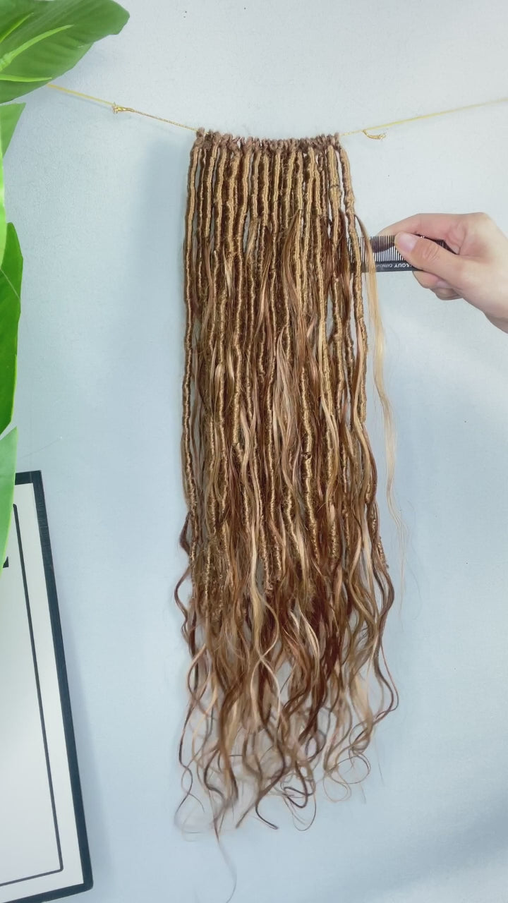Mixed Blonde Brown Pre-looped Human Hair Crochet Goddess Locs With Body Wave Curls