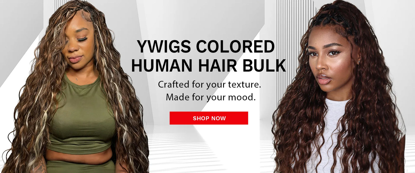 Discover Ywigs' diverse collection—featuring human braiding hair, crochet hair, braids, locs, weft bunldes and more. Start your style journey with us today!
