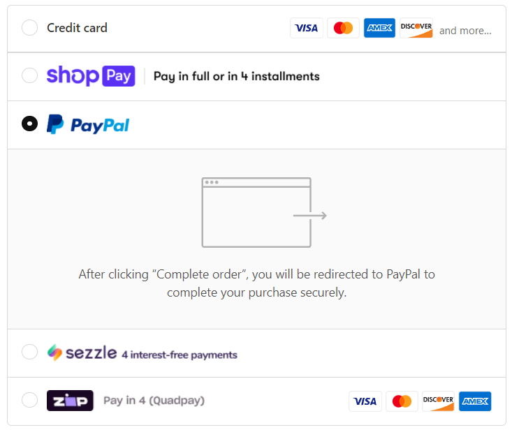When you place an order with PayPal you will be redirected to the PayPal payment page, where you can confirm your payment by logging in with your PayPal username and password. To pay in 4 with PayPal, choose PayPal at check out and select ‘Pay Later’ – you’ll see ‘Pay in 4’ as a way to pay. Make the down payment today, and pay the rest in 3 payments – one every two weeks.