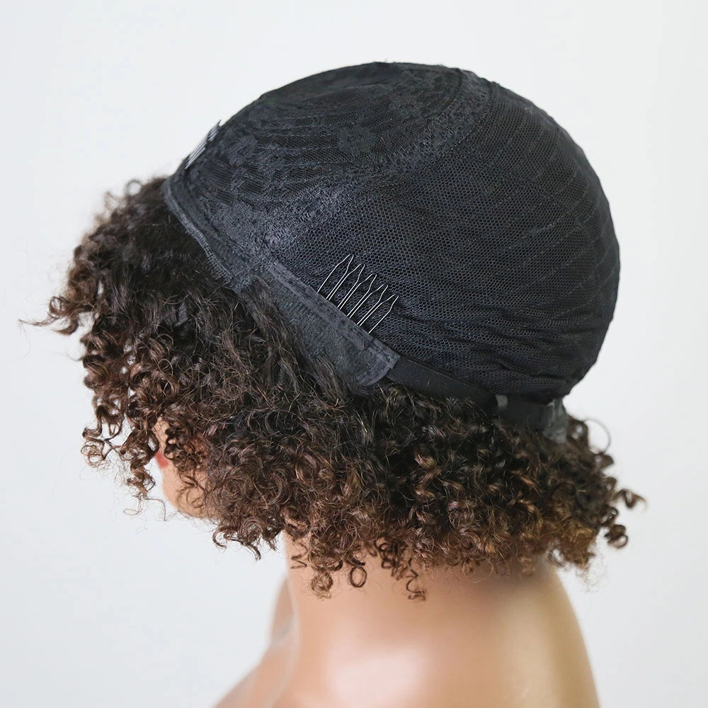 12 Inch 150% Density T1/B4 Curly Human Hair Bob Wig with Bangs for Sale Y51132