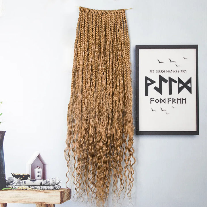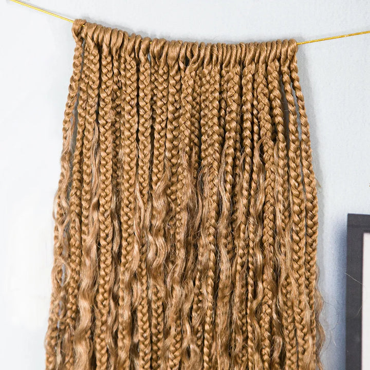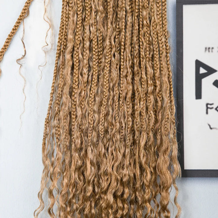 Honey Blonde Crochet Boho Box Braids with Human Hair Curls