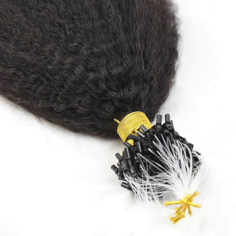 Ywigs Kinky Straight Micro Loop Hair Extensions add natural volume and length with 100% human hair. Their flexible micro-loop design ensures comfortable, tension-free wear and easy styling. No glue or residue is needed, and each set can be reused for up to a year, lasting 6–8 weeks per install.