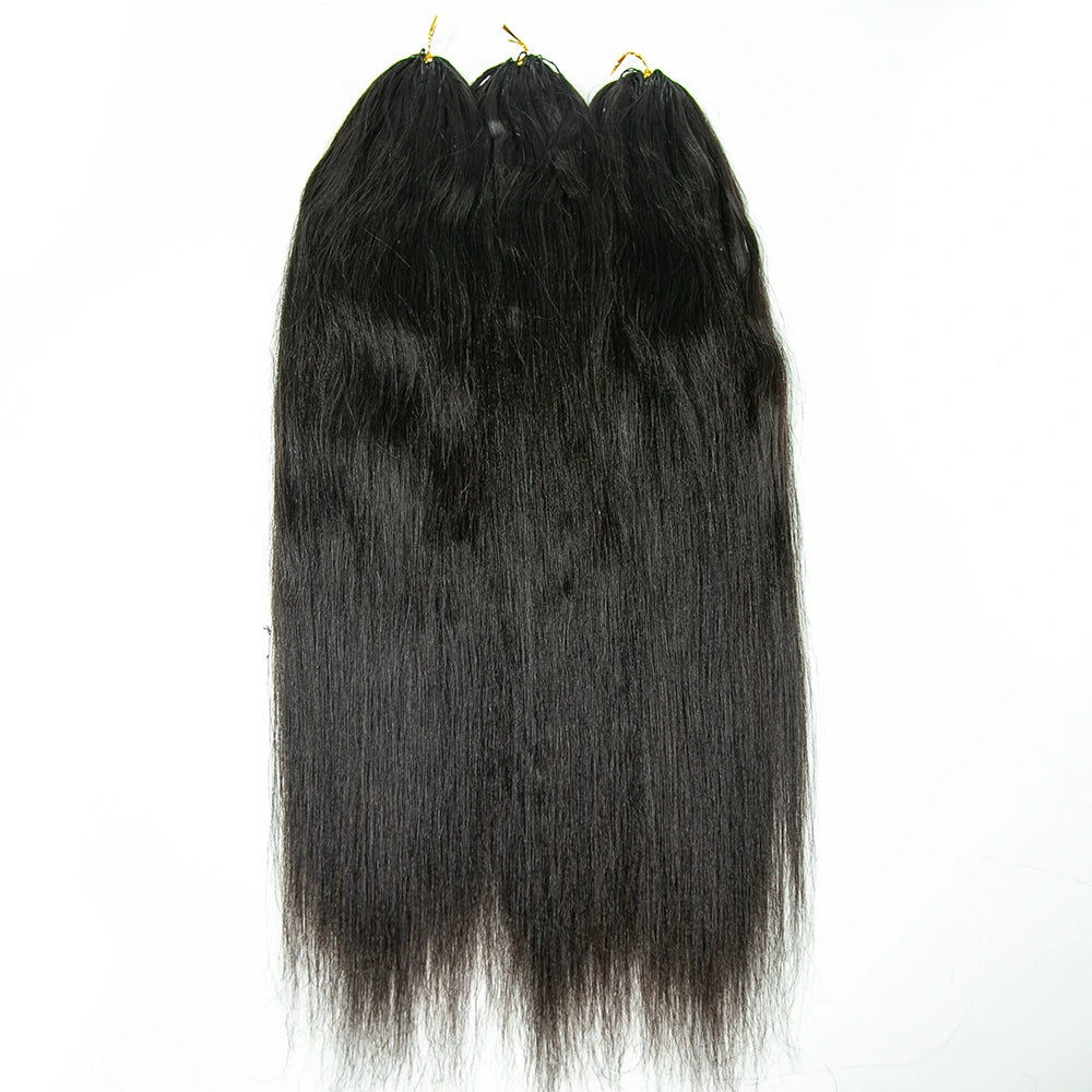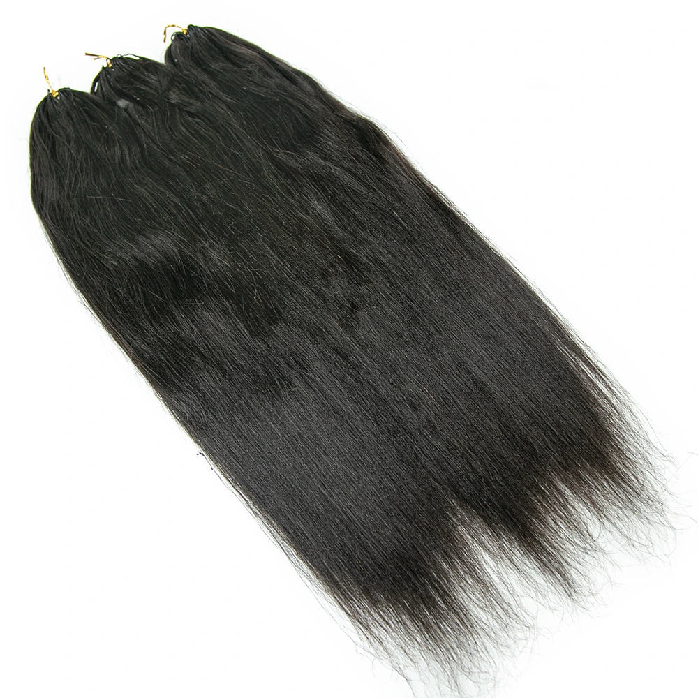 Light Yaki Straight human crochet hair has a crafted texture that looks and feels like relaxed African American hair. The texture varies subtly throughout each strand for a natural and authentic appearance.