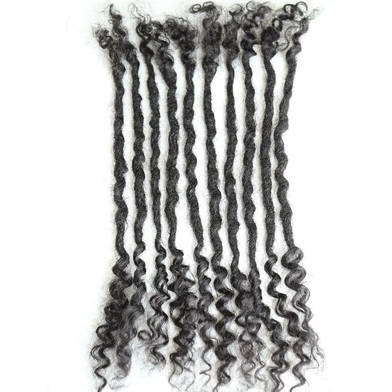 Ywigs natural black #1B human hair loc extensions feature curly ends for a realistic look. Made from high-quality human hair, they offer easy installation and a natural appearance, perfect for starting or enhancing your loc style. Available in multiple sizes and lengths to suit your needs.