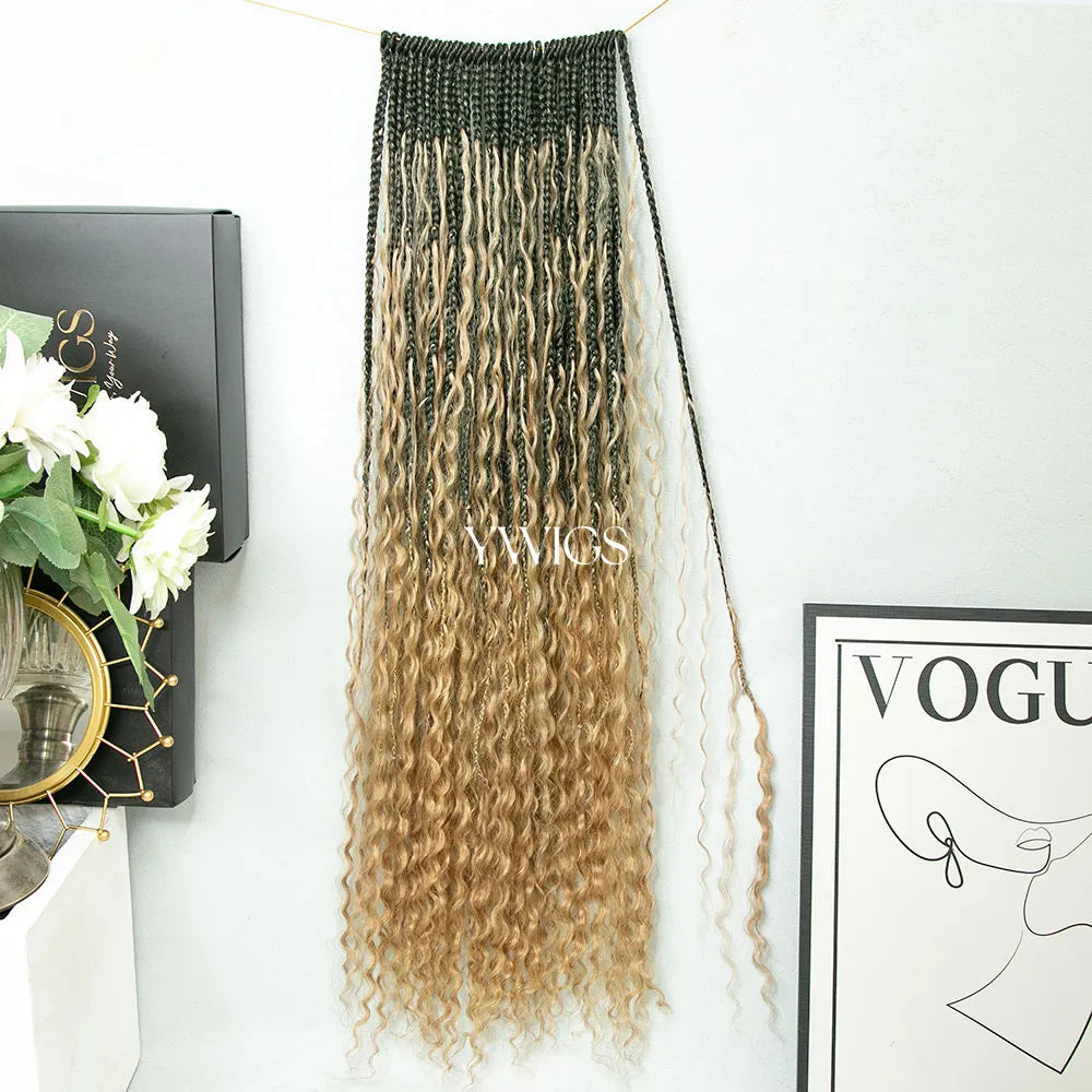 Honey Blonde Crochet Boho Box Braids with Human Hair Curls