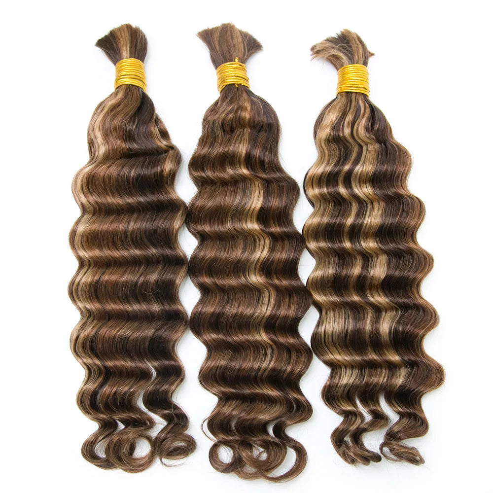 #4/#27/#30 Mix Color Blend Loose Deep Wave Bulk Human Braiding Hair
